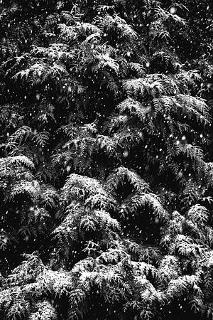 Snow falling and powdering the trees of my backyard in Huntington, NY.
