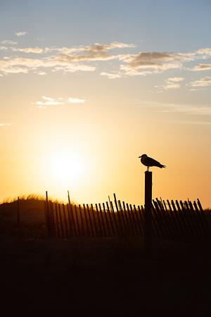 The sun sets through the haze of salty air at Robert Moses Beach.